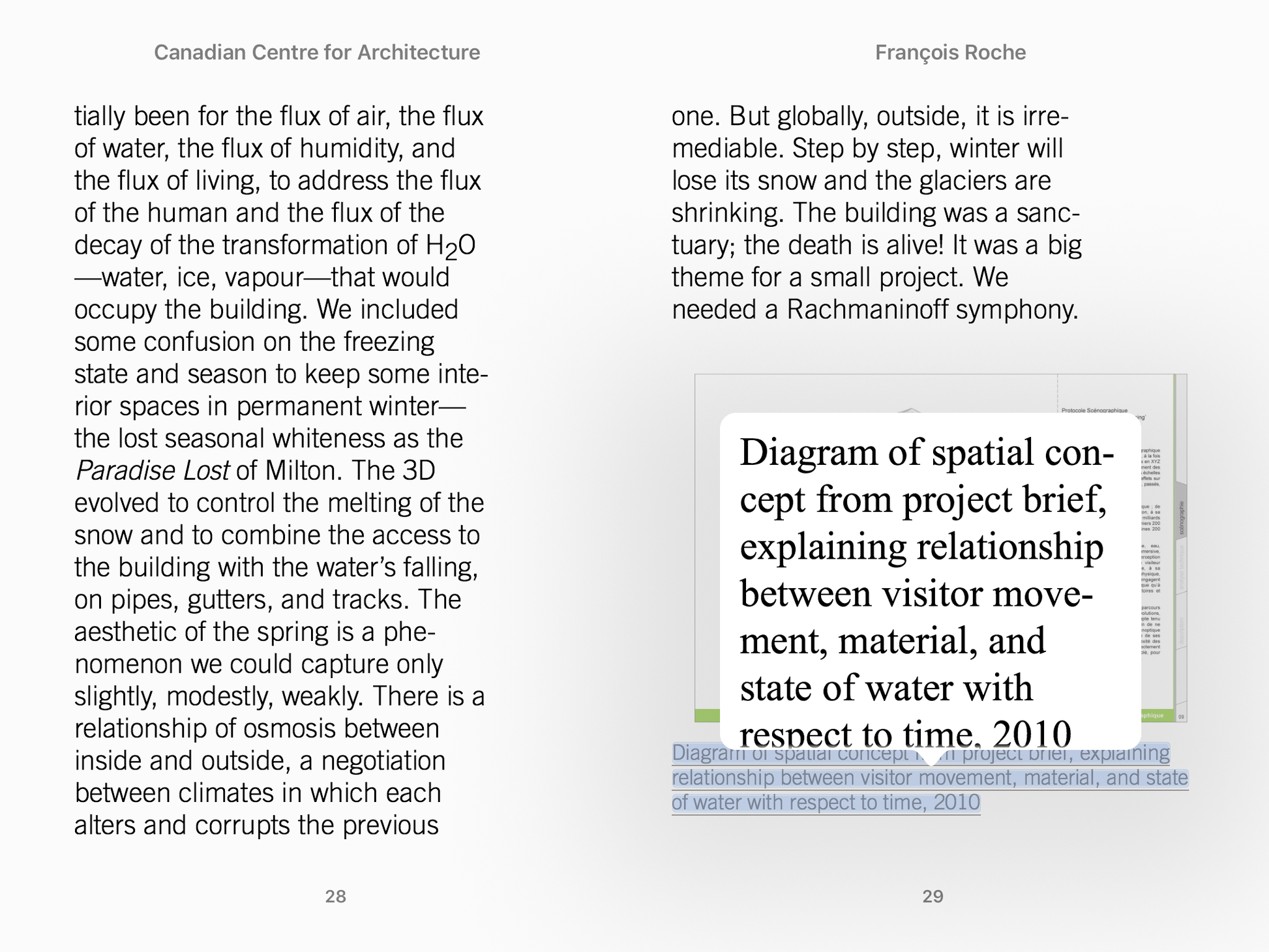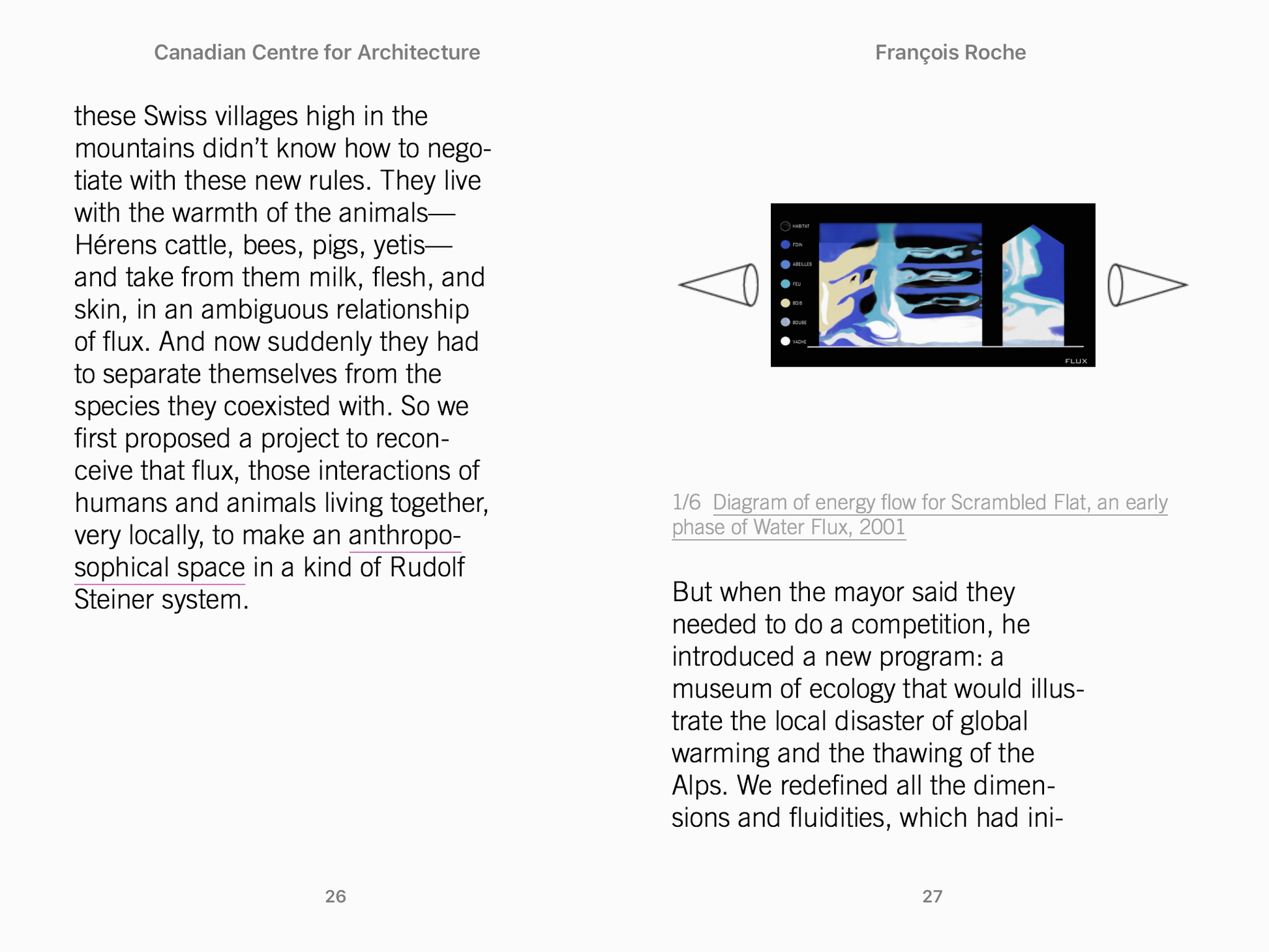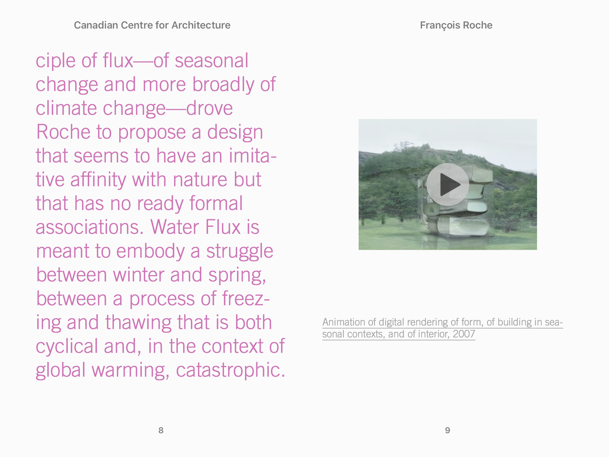 As part of a multiyear project that includes three exhibitions on twenty-five seminal projects, the CCA and Greg Lynn are publishing a series of digital publications recording conversations with key architects. The epubs are heavily illustrated with photos, drawings, renderings, videos, PDFs, and interactive 3D models.