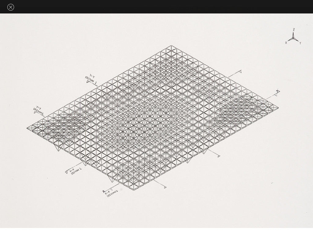 For these two large public gymnasium facilities, developed in the same period around 1991, Shoei Yoh paid special attention to the design of the roof. For both Odawara and Galaxy Toyama the regular geometry of the ground floor, often determined by the form and size of the different sports fields, is juxtaposed with a fluid three-dimensional membrane that covers the entire complex. Acquiring an almost textile-like quality, the roof is in fact a non-standard wireframe structure composed of individual steel rods and joints; a system evolved from previous research Yoh conducted with prefabricated assembled construction techniques, in particular the MERO system.