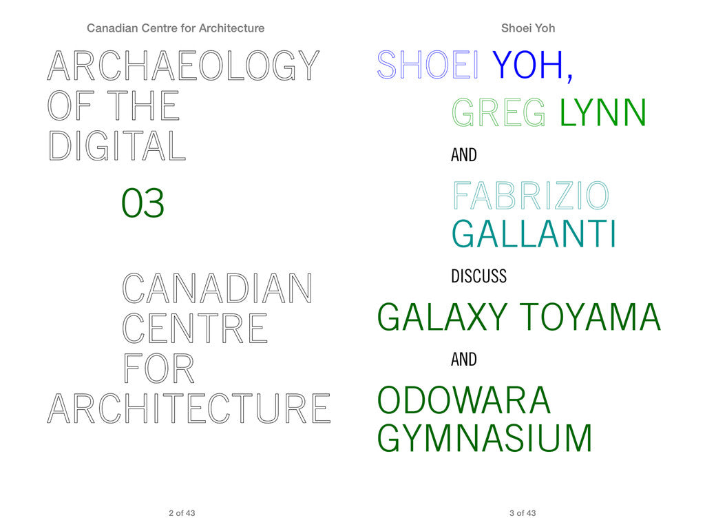 This publication presents Sports Complex, Galaxy Toyama and Odwawara Gymnasium, two projets from the early 1990s by Japanese Architect Shoei Yoh.