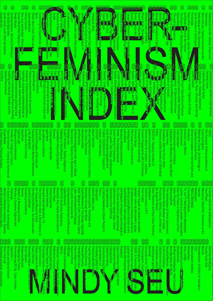 The creation and use of the Cyberfeminism Index is a social and political act. It takes the name cyberfeminism as an umbrella, complicates it and pushes it into plain sight. Edited by designer, professor and researcher Mindy Seu (who began the project during a fellowship at the Harvard Law School’s Berkman Klein Center for the Internet & Society, later presenting it at the New Museum), it includes more than 1,000 short entries of radical techno-critical activism in a variety of media, including excerpts from academic articles and scholarly texts; descriptions of hackerspaces, digital rights activist groups, bio-hacktivism; and depictions of feminist net art and new media art.