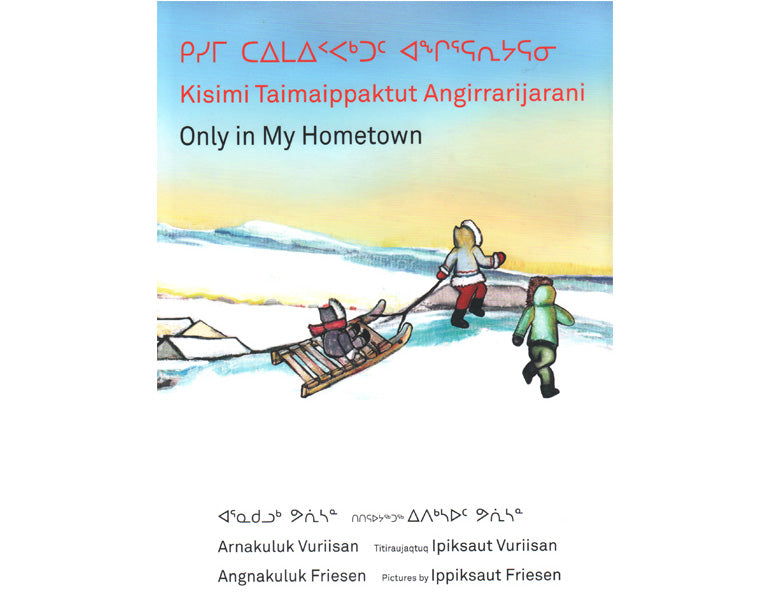 Sisters Angnakuluk Friesen and Ippiksaut Friesen collaborate on this story about what it’s like to grow up in an Inuit community in Nunavut. Every line about the hometown in this book will have readers thinking about what makes their own hometowns unique. With strong social studies curriculum connections, this book introduces young readers to life in the Canadian North, as well as the Inuit language and culture. Angnakuluk’s simple text, translated into Inuktitut and written out in syllabics and transliterated roman characters, is complemented by Ippiksaut’s warm paintings of their shared hometown.